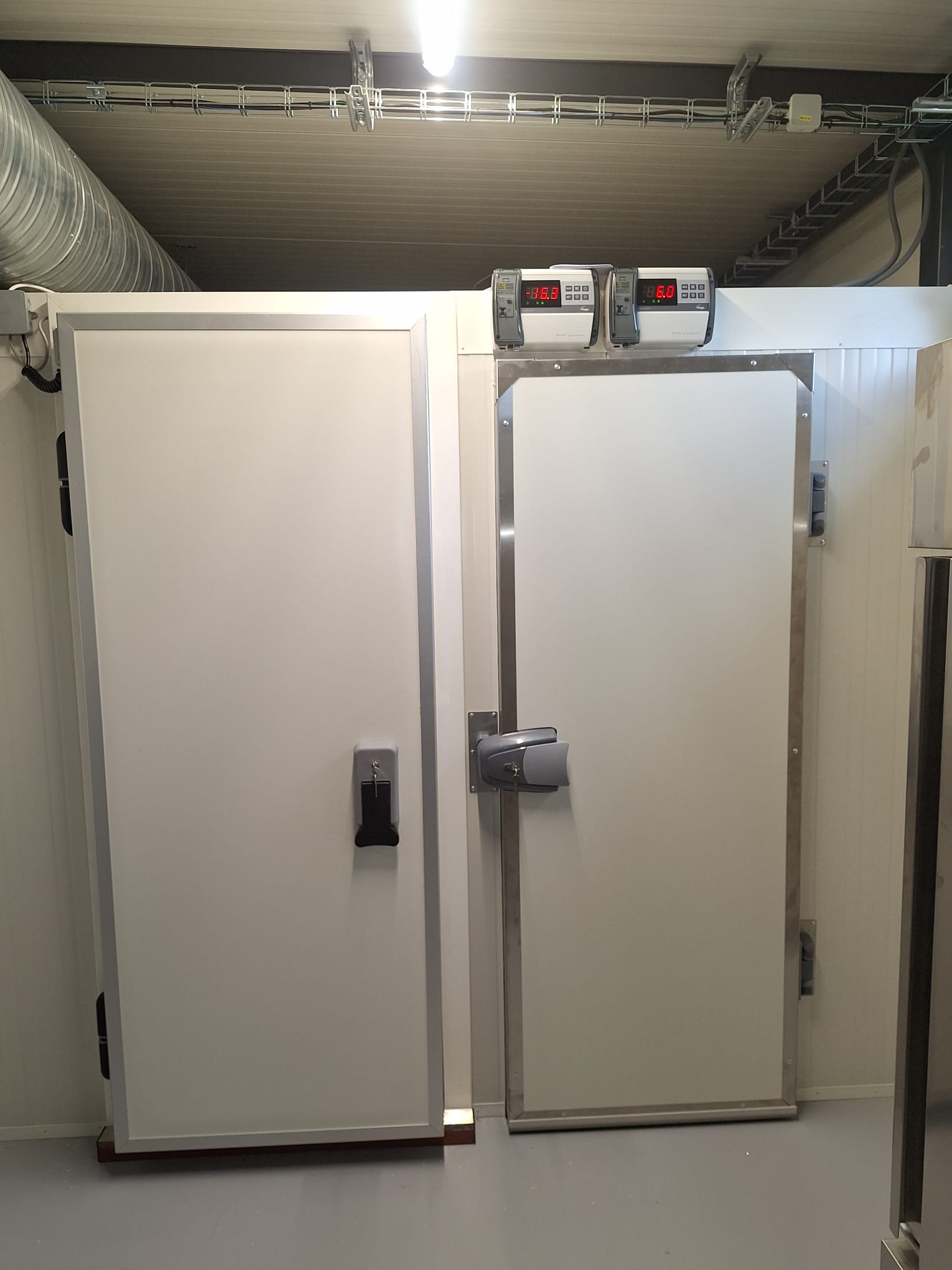 Box postavíme u nás z PUR alebo PIR panelov. Osadíme dvere, agregát a ovládanie.