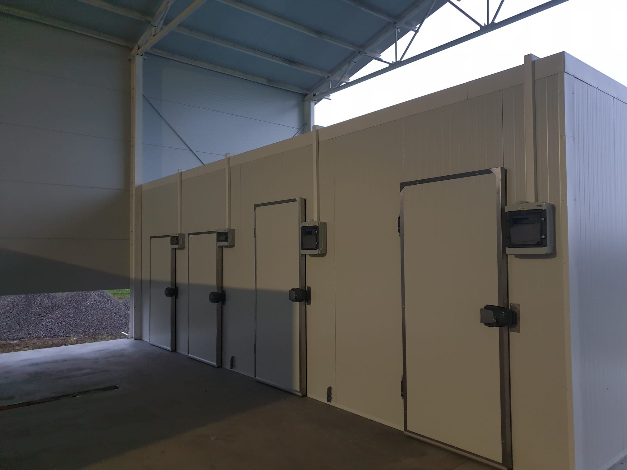 Veľké chladiace a mraziace haly pre výrobu, logistiku a potravinárov. Viac dverí, viac sekcií, každá s vlastnou teplotou.