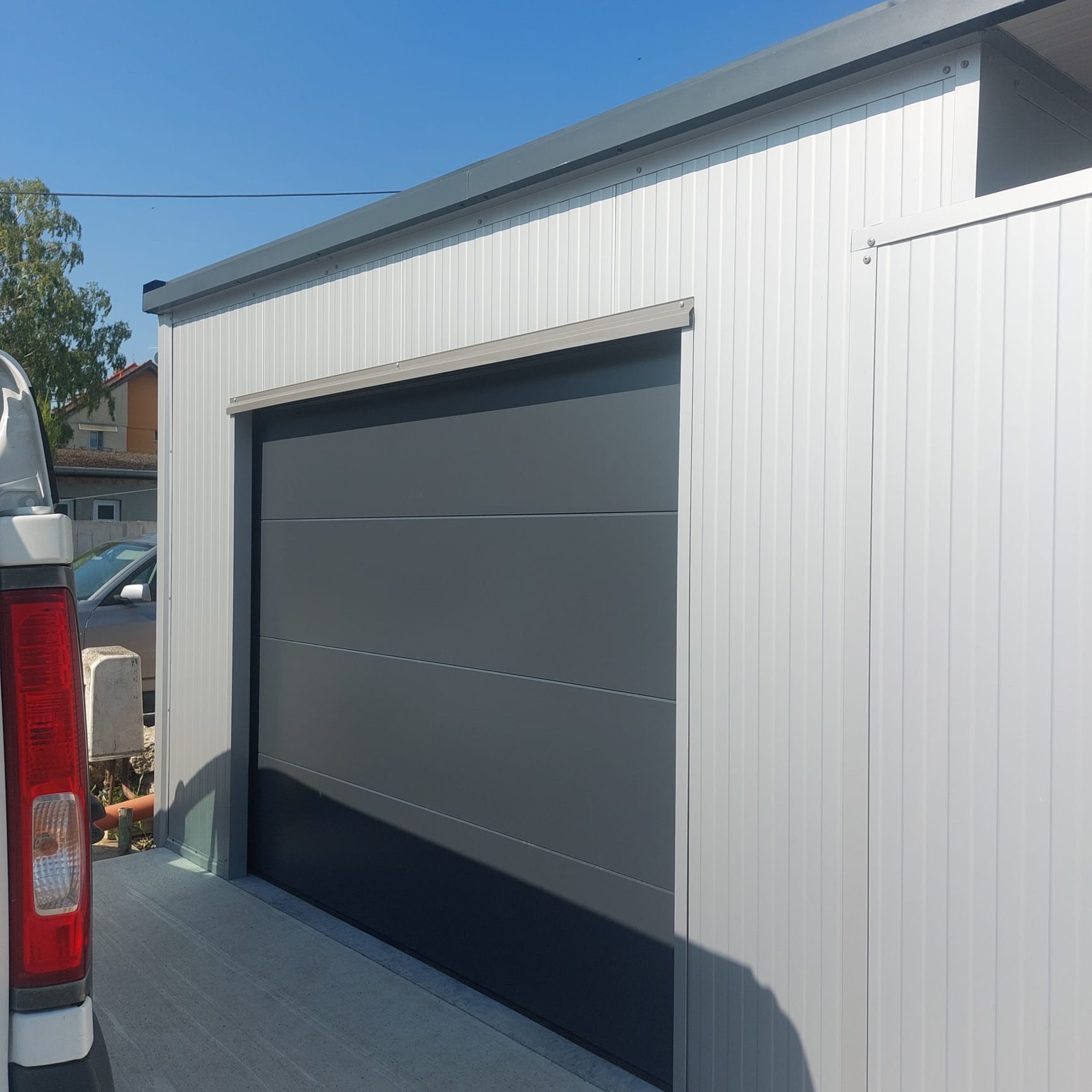 Garáž na auto alebo techniku, so sekčnou bránou, oknami a vchodovými dverami. Doprava a montáž v cene.